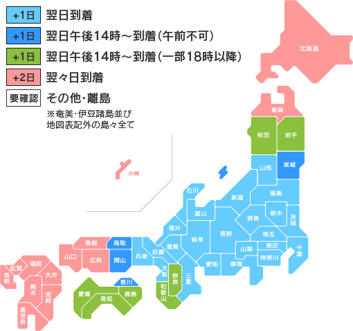 | 奈良・和歌山 ※一部地域翌日18時以降 | 翌日14時以降(一部18時以降) | |