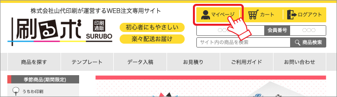 - ログインをして、 「マイページ」 をクリックします。( ログインの仕方はこちら )