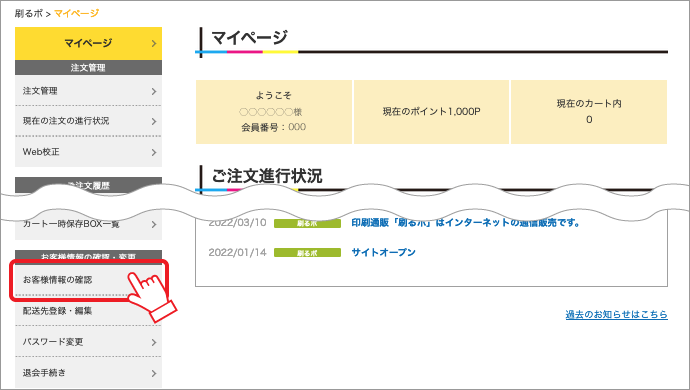 - 表示された 「マイページ」 の 左下 より 「お客様情報の確認」 ボタンをクリックします。