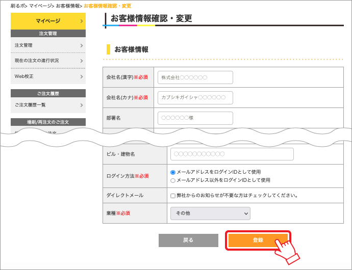 会員登録の内容の確認・変更