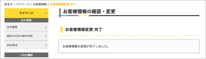 - お客様情報変更完了のメッセージが表示されて終了となります。